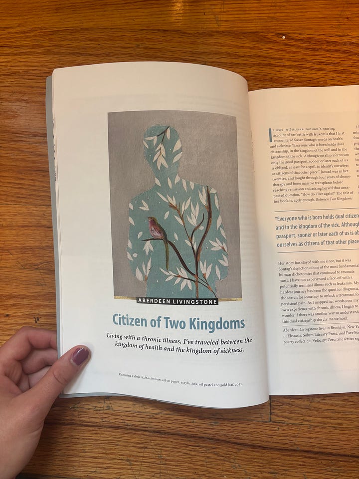 And for new subscribers who came from that article, welcome! I'm so glad you're here. My most recent poem “body positivity” might be interesting to you, as it relates to what I discuss in the article: bodies and health and how God views them. And thank you all for your comments on that poem—it was exciting to see that it struck a chord, and I'm looking forward to more conversations about this. How lucky I am to get to explore these things with you!
